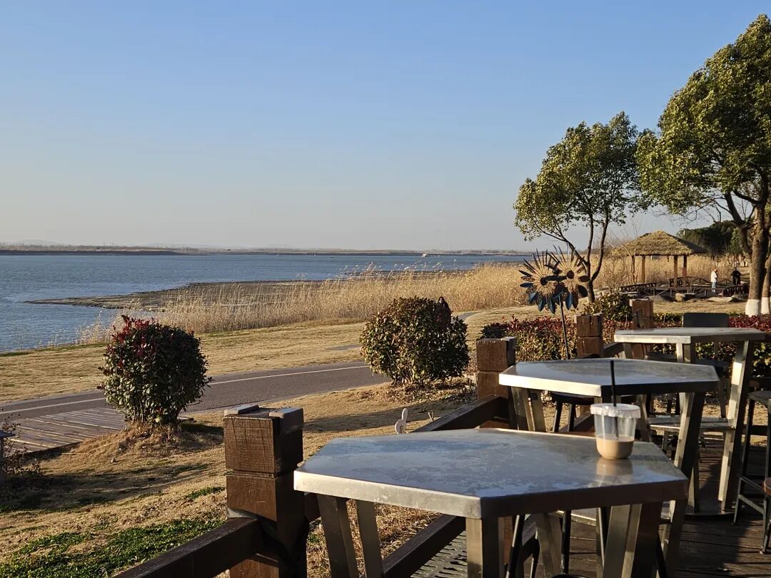 在马鞍山江边的日落咖啡馆