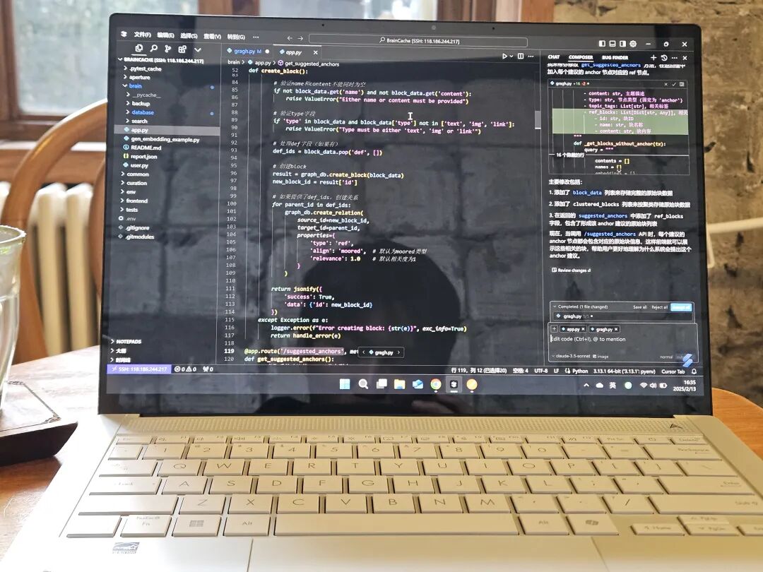 我们最近在开发一款AI原生的笔记+创作软件,在开发自有创作工具时,我们刻意保留了一些「不效率」设计。在我的脑海中,AI应该主要参与我创作的两个步骤:一是在创作初期辅助我进行头脑风暴,理出整篇文章的逻辑;二是在我写完草稿之后帮我进行润色加工,并给出修改意见。