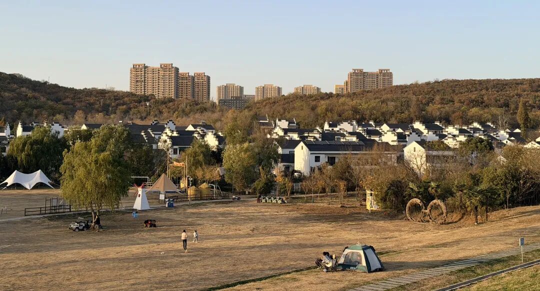 除了桂山外,从仙林往东南不远,还有一个名为桦墅的现代村落,村中古朴典雅的江南建筑,与背景中句容宝华镇的高层住宅形成鲜明对比。从桦墅村出发,可以往射乌山上徒步,欣赏美丽的自然景观。